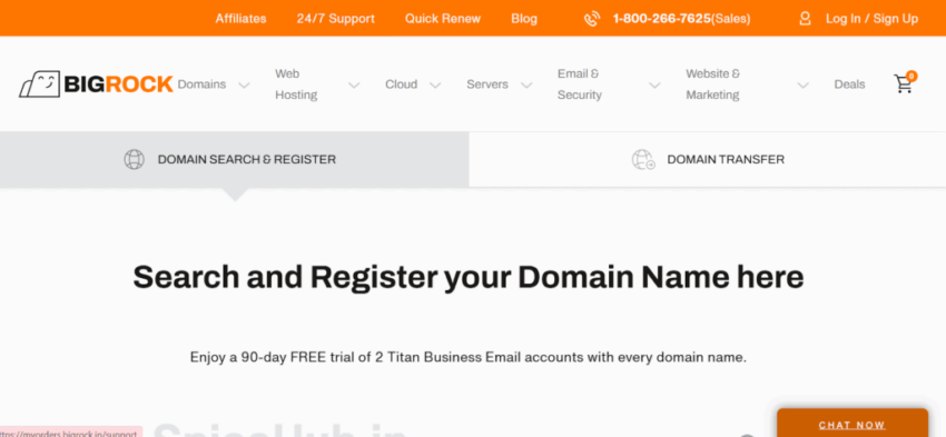 BigRock is a popular domain registrar that allows users to purchase and register domains at competitive prices. The best part? It offers a 90-day free trial of two Titan Business Email accounts when you purchase a domain from their platform.