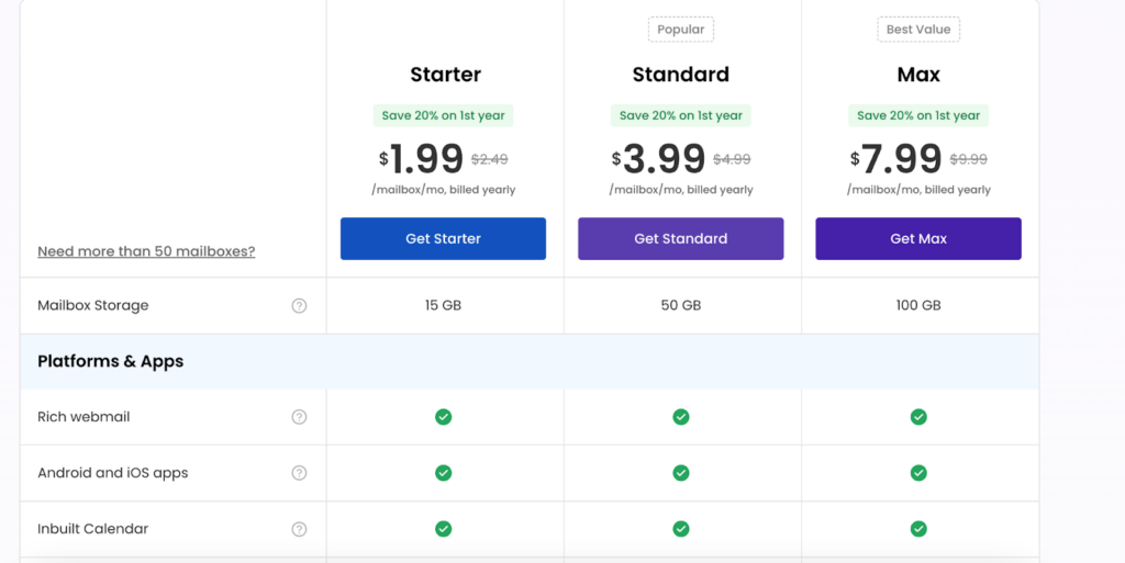1. Starter – $1.99/mailbox/month (billed yearly)